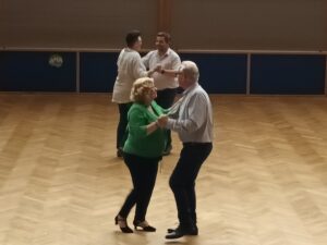„Eins, Zwei, Tap“ sind die Kommandos, die die Teilnehmer von Caro und Volker zu hören bekommen. Nach den ersten Grundschritten wird das Repertoire durch weitere Figuren erweitert. Im Laufe des Abends funktionieren die Schritte immer besser. Die Teilnehmer hatten an diesen Abend viel Spaß und freuen sich schon auf nächste Woche.